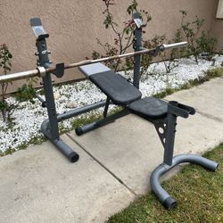 Fitness Gear Adjustable Bench And Squad Rack Bar And Weights 4x25 2x10 2x5 45lbs Bar About 180lbs$250Livingston, CA