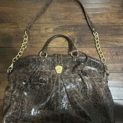 Brahmin Brown Croc Embossed Leather Satchel Gold Chain Strap Large Tote$35Merced, CA