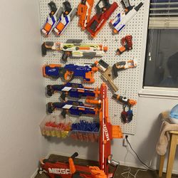 Nerf Guns, Ammo, Wall Display Peg Board and Accessories $250Modesto, CA