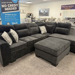 Black Sofa Sectional + Ottoman Set - FAST APPROVALS $1,299Modesto, CA