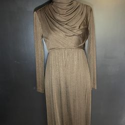 1970s Metallic Bronze Gown w/Draped High Neck/Long Sleeve Maxi–Talon Zipper$175Modesto, CA