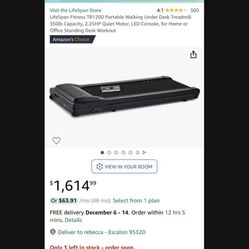 Life Span Under Desk Free Standing Treadmill Like New Excellent Condition Cost Almost $2,000 New $300Escalon, CA