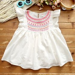SIZE 7-8 GIRLS LIGHT CREAM MULTICOLOR EMBROIDERY DESIGN COTTON BABYDOLL TUNIC$3Merced, CA