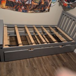 Medium gray twin xl trundle bed like new$140Turlock, CA