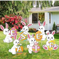 6 Pcs Easter Metal Yard Sign, Easter Bunny Eggs Metal Garden Stakes Spelling Letters Stakes for Outside Garden Yard Spring Lawn Patio Outdoor $12Modesto, CA