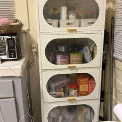 Tall Bathroom Storage Cabinet, 66" Bamboo Narrow Bathroom Floor Cabinet with 2 Door & 4-Tier Open Shelves, Corner Tall Cabinets Freestanding Organizer$55Ontario, CA