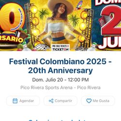 Festival Colombiano Dos Boletos General Admission$65Whittier, CA