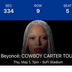 Beyoncé Tickets $720Chino Hills, CA