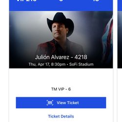 Julion Alvarez 4/18 Tickets Row 5$1,300Downey, CA