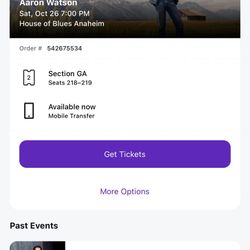 AARON WATSON TICKETS$100Whittier, CA