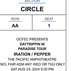 Concert Oc Fair Tickets IRATION / PEPPER$800Torrance, CA