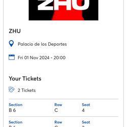 2 Zhu Tickets In Mexico City!$250Long Beach, CA