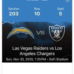 Las Vegas Raiders at Los Angeles Chargers 3 Tickets Plaza Level (203)$960Buena Park, CA
