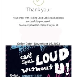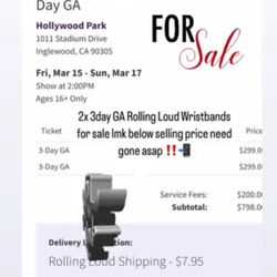 Rolling Loud Ticket 3 Day Ga Pass (Regular)$400Fullerton, CA