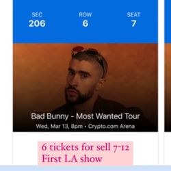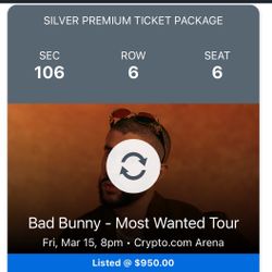Bad Bunny Tickets March 15$1,200City Of Industry, CA