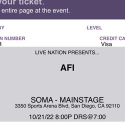 AFI SOMA tonight Friday 10/21$30Irvine, CA