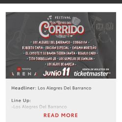 Los Reyes Del Corrido Concert Tickets (2) For JUNE 11, 2022$217Ontario, CA