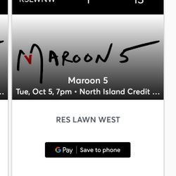 2 MAROON 5 TICKETS$125Irvine, CA