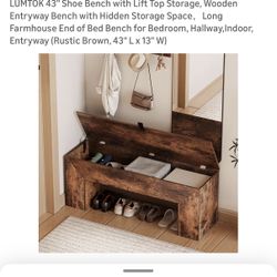 Brown Wooden Shoe Bench with Lift Top Storage$50Los Angeles, CA