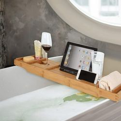 Homfa Bamboo Bathtub Tray, 29.3"-43.5" Expandable Bath Table Over Tub with Wine and Book Holder, Phone & Cup Slot, Two Removable Trays and Free Soap D$12Diamond Bar, CA