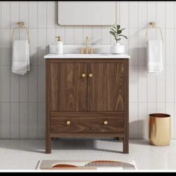 Glacier Bay Rory 30” Walnut Single Sink Vanity with White Marble Top$350Riverside, CA