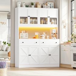 71" Pantry Cabinet with LED Light and Charging Station, Farmhouse Kitchen Pantry Cabinet with Microwave Stand, 47.2" Wide Kitchen Hutch Food Pantry wi$240Rancho Cucamonga, CA