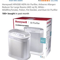 Honeywell HPA300 HEPA Air Purifier, Airborne Allergen Reducer for Large Rooms (465 sq ft), White - Wildlfire/Smoke, Pollen, Pet Dander, and Dust Air P$150Bell Gardens, CA