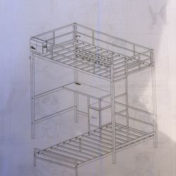 Bunk Bed Twin Over Twin Size with Desk Station L-Shaped Metal Bunk Bed Storage Shelves and Drawers Loft Beds with Safety Guardrail and Ladder (Black)$139San Dimas, CA