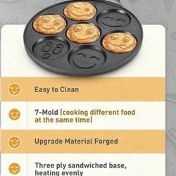 1pc Smiling Face Design 7-Hole Non-Stick Pancake, Egg Cooker Pan, Cooking Molds, Cookware, Kitchen Appliances$10Jurupa Valley, CA