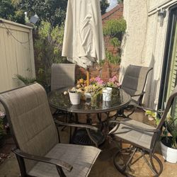 Patio Furniture Set - Outdoor table with umbrella and four chairs.$350Arcadia, CA