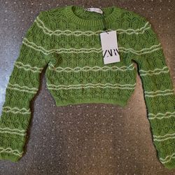 Zara Woman's Cropped Long Sleeve Striped Sweater Color Green Size Small NWT.$20Glendora, CA