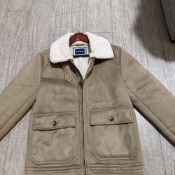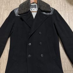 Men’s Fitted Peacoat size Small Leather Shoulder Removable Sherpa Collar $80Laguna Niguel, CA