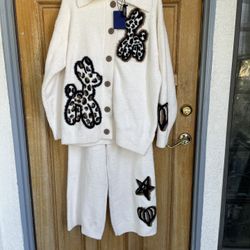 WILDROOMS Balloon Dog Fuzzy Knit Lounge Set Jacket Pants $150City Of Industry, CA