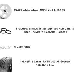 15x6.5 White Wheel AVID1 AV8 4x100$800East Los Angeles, CA