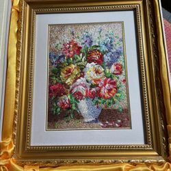 Chinese 乱针绣 Random Needle Embroidery Floral Vase Framed Silk Art$239City Of Industry, CA