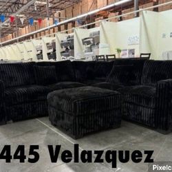 Gorgeous Black Fur-Like Jumbo Corduroy Sectional Sofa Set $499Norwalk, CA