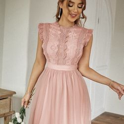 Dress blush pink fit-and-flare dress with a flattering V-neckline and delicate lace detail at the shoulders and upper back. Features an open-back$15Tustin, CA