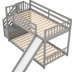 Twin over Twin Bunk Bed Wooden Bed Frame with Slide and Stairway $275Phillips Ranch, CA