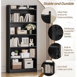 Bookcase with Doors, Tall Cabinets Storage Shelves, 5 Tier Bookshelf with Storage Cabinet, Light Wood Rustic Display Shelf Home Decor Furniture for Of$130Fullerton, CA