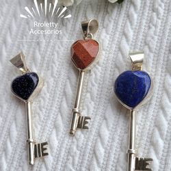 Sterling Silver 925 Pendants Key Design With Natural Stones.$58Downey, CA