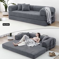 Convertible Futon Sofa Bed, 3-Seater Modern Corduroy Foam Floor King Size Bed Foldable Sleeper Lounge Loveseat Sofa Couch with 2 Back Cushions for Liv$185El Monte, CA