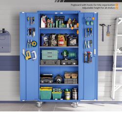 72'' Tall Garage Storage Cabinet, Metal Storage Cabinet with Pegboards, Wheels, Locking Doors and Adjustable Shelves (Blue, 32''W x 16''D x 72''H)$140Santa Ana, CA
