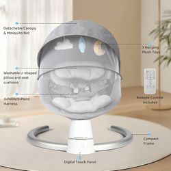 Baby Swing for Infants, Baby Rocker with 5 Speed & 10 Preset Lullabies, Bluetooth Support, 5 Point Harness with Remote Control and 3 Hanging Toys, Gra$70Ontario, CA