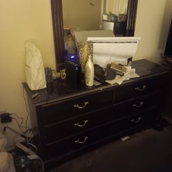 Large 8 Drawer Solid Wood Dresser With Mirror - Black With Gold $375Pico Rivera, CA