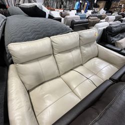 Cream Leather 3-seat Reclining Sofa$280Long Beach, CA