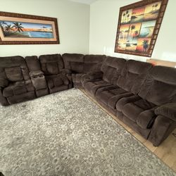 3 piece sectional couch will full size fold out sleeper, 2 power recliners 1 is not working this couch is in a home with dogs good condition $175Long Beach, CA