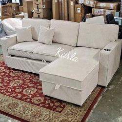 Beautiful 2-Pc Corduroy Sectional Sofa With Pullout, Reversible Chaise, And USB Port $375Norwalk, CA