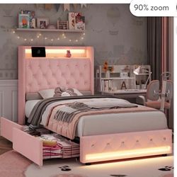 Pink LEE Twin Bed Frame with Light & Charge Station, with Storage Drawer, B-19$139Costa Mesa, CA