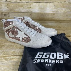 GGDB Golden Midistar Pink & White Shoes Women 38 - Glitter Star Sneakers w/ Bag$90Riverside, CA