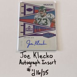 Joe Klecko New York Jets Hall of Fame DE Plates & Patches Short Print Autograph Insert Card. #’d 16/35. $100San Jose, CA